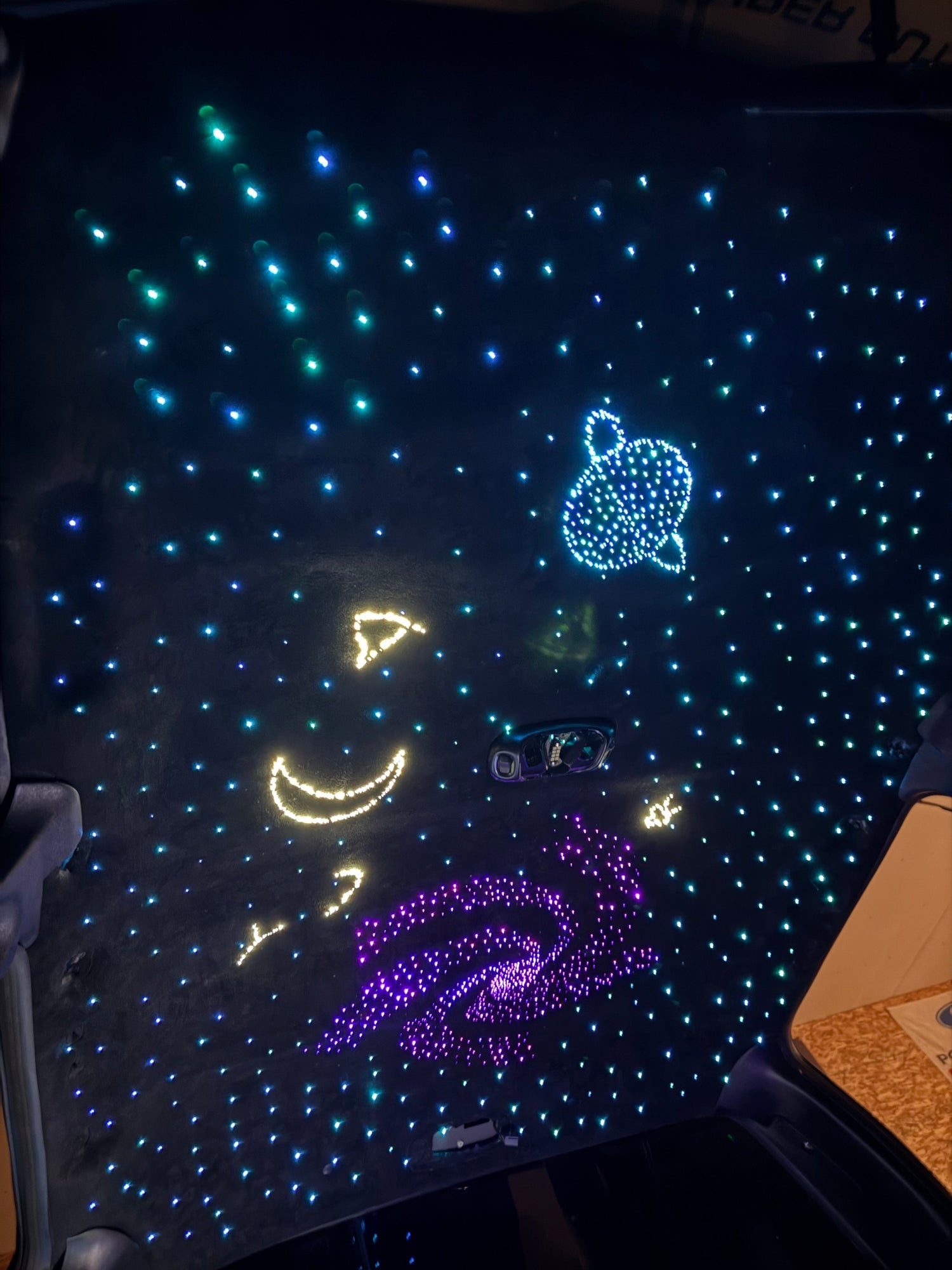 Here for this install we did 2 StarLight Kits to provide 3 seperate colors so each design will stand out! This ended up being a total of 1600 stars!