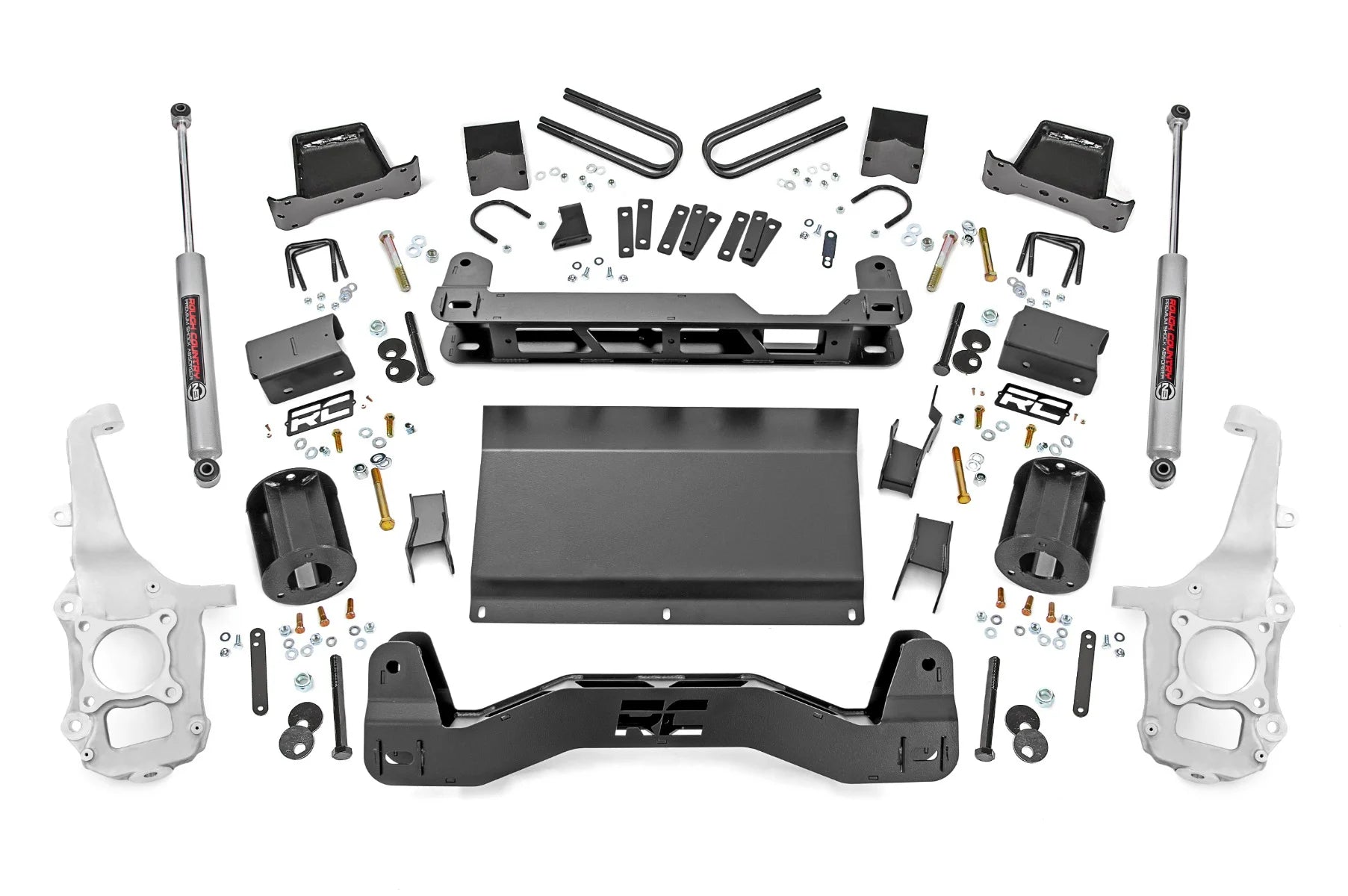 Installation and Warranty: Transform your F-150 with our all-inclusive 6-inch Lift Kit, featuring durable aluminum knuckles, a skid plate, and all the hardware for a factory-like setup with extra ground clearance. Plus, enjoy peace of mind with Rough Country's limited lifetime warranty, protecting against structural and workmanship defects.