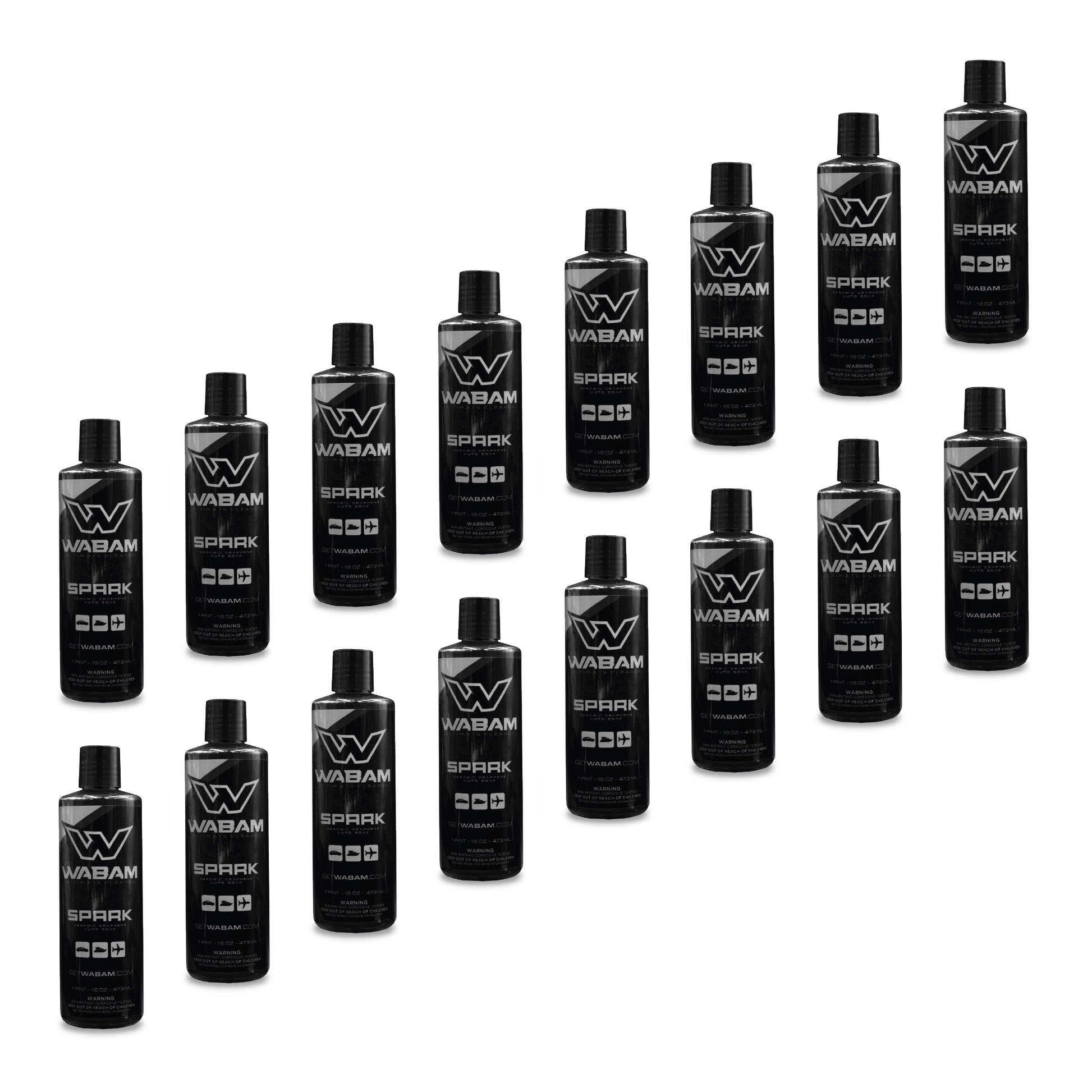 ● In a bucket, use 1 to 4 oz. of Spark (Personal preference on soap suds/cream quantity) and add water. Scrub/agitate in sections with a clean mitt or brush.